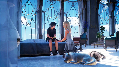 Though it’s an arranged marriage, it’s not one either party is opposed to: Noctis and Luna are childhood friends, though they have not seen each other in twelve years, since Luna’s home of Tenebrae was taken over by the Niflheim empire. The game doesn’t do a particularly good job of explaining how they came to know one another, leaning instead on the anime OVA Brotherhood to provide context: Noctis was gravely injured as a child and came to Tenebrae to recover. During this time, he and Luna became fast friends. (Side note: you should not have to watch a freaking anime for this kind of exposition. Thanks Square.)